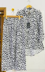 Home 2 piece suit Co-ord sets Asthetic white cheetah
