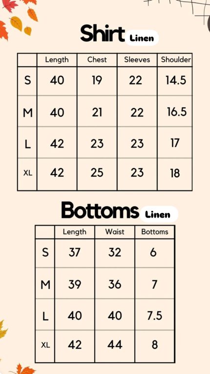 Linen Size chart