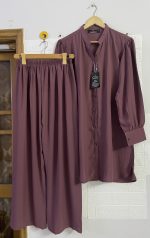 Elevate your style with this stunning WINTER GEORGETTE COORDSETS💜 Featuring a same-length shirt with *high cuff sleeves*, *puffy shoulders*, and an open collar design. Paide with loose-bottom *plazo pants*, this outfit is perfect for a chic and comfortable look. Ideal for casual outings or gatherings.
