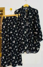 Home 2 piece suit Co-ord sets Fancy black flowered